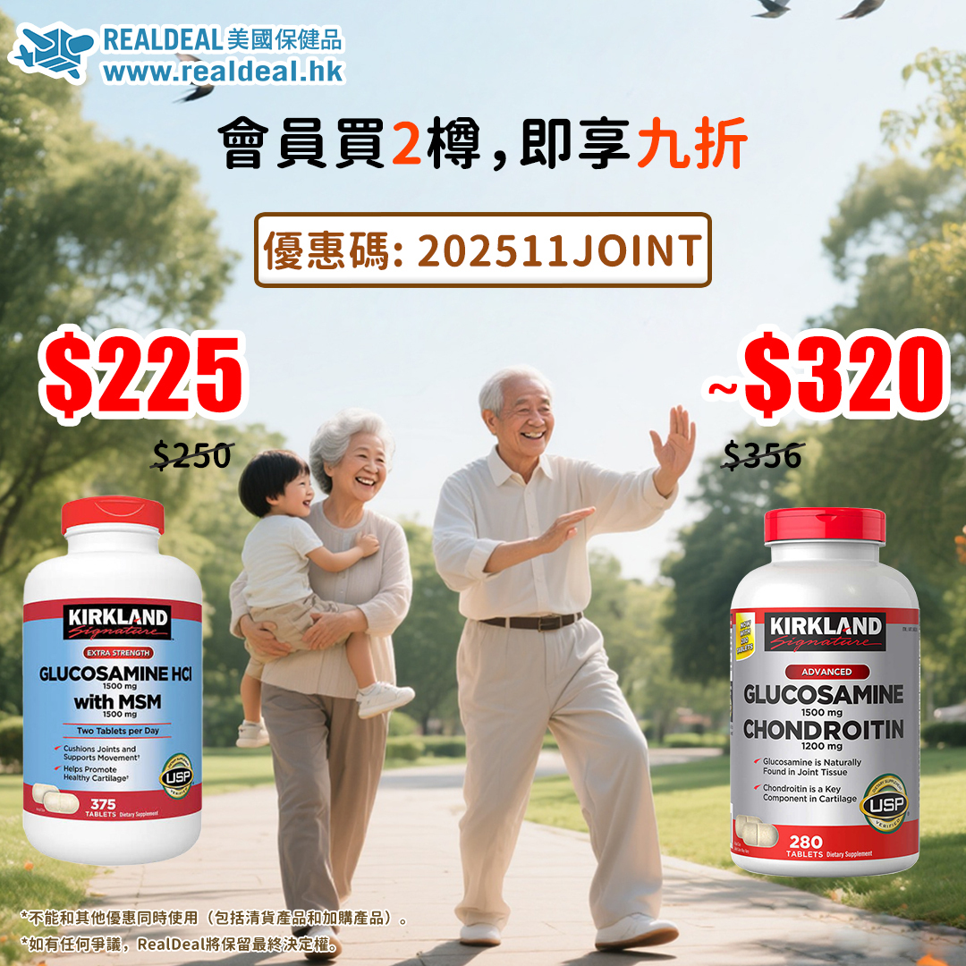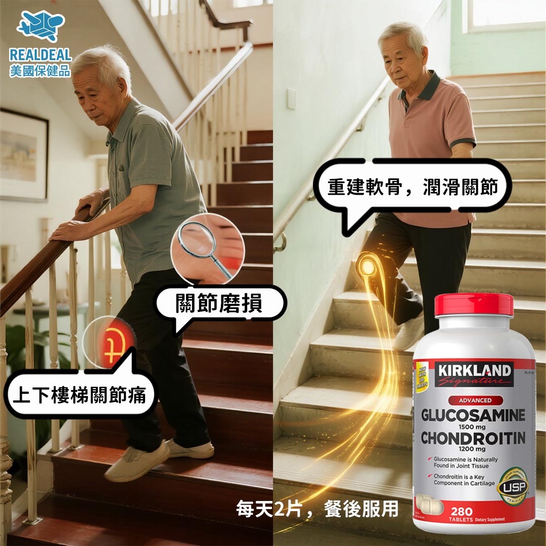 先介紹一下葡萄糖胺和軟骨素,兩者都是構成軟骨組織和軟骨液的重要成份,可以有效預防和改善關節退化磨蝕,甚至刺激軟骨修復,是各大廠商最常用的成份。市面上主流的關節產品都含有這兩種成份,而我們店舖的皇牌產品「Kirkland葡萄糖胺軟骨素」亦無異,不過劑量上對比其他品牌比較高,針對關節退化磨蝕等問題效果會比較顯著。