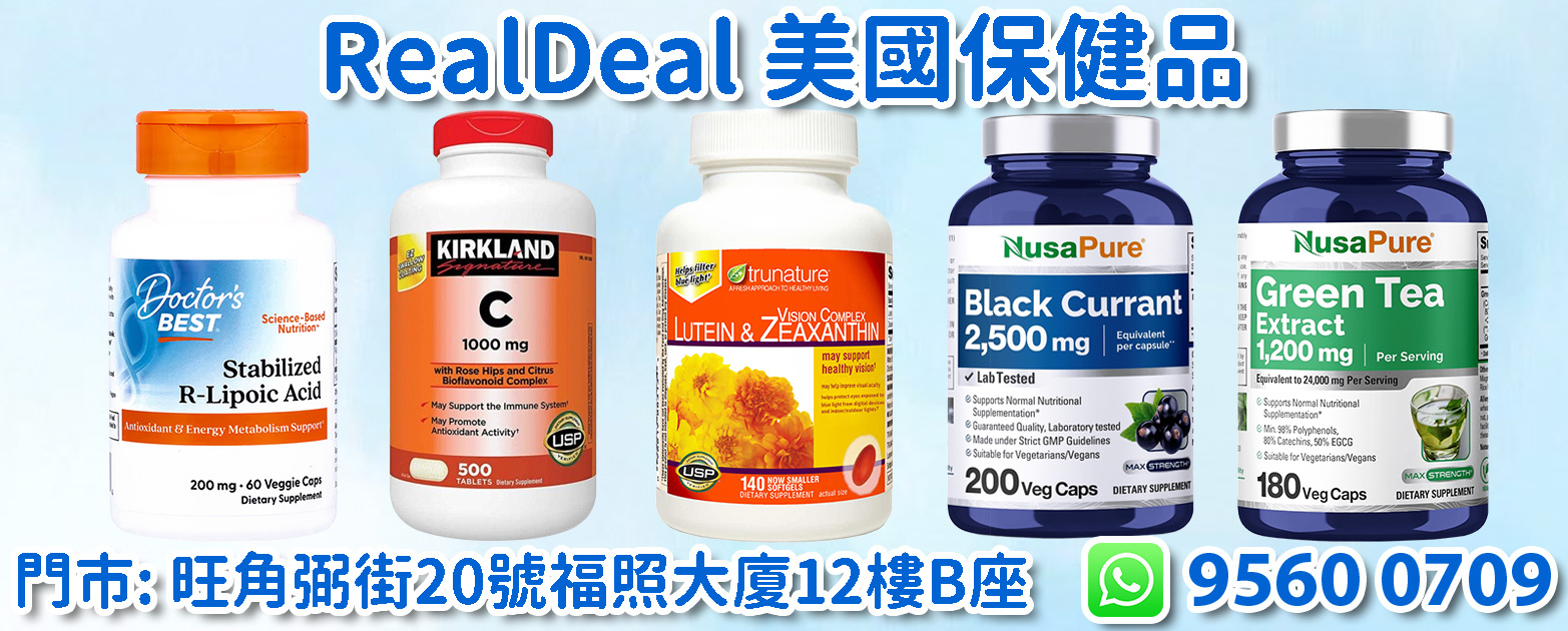 歡迎親臨旺角店購買:旺角弼街20號12樓B | RealDeal 保健品 | WhatsApp 9560 0709