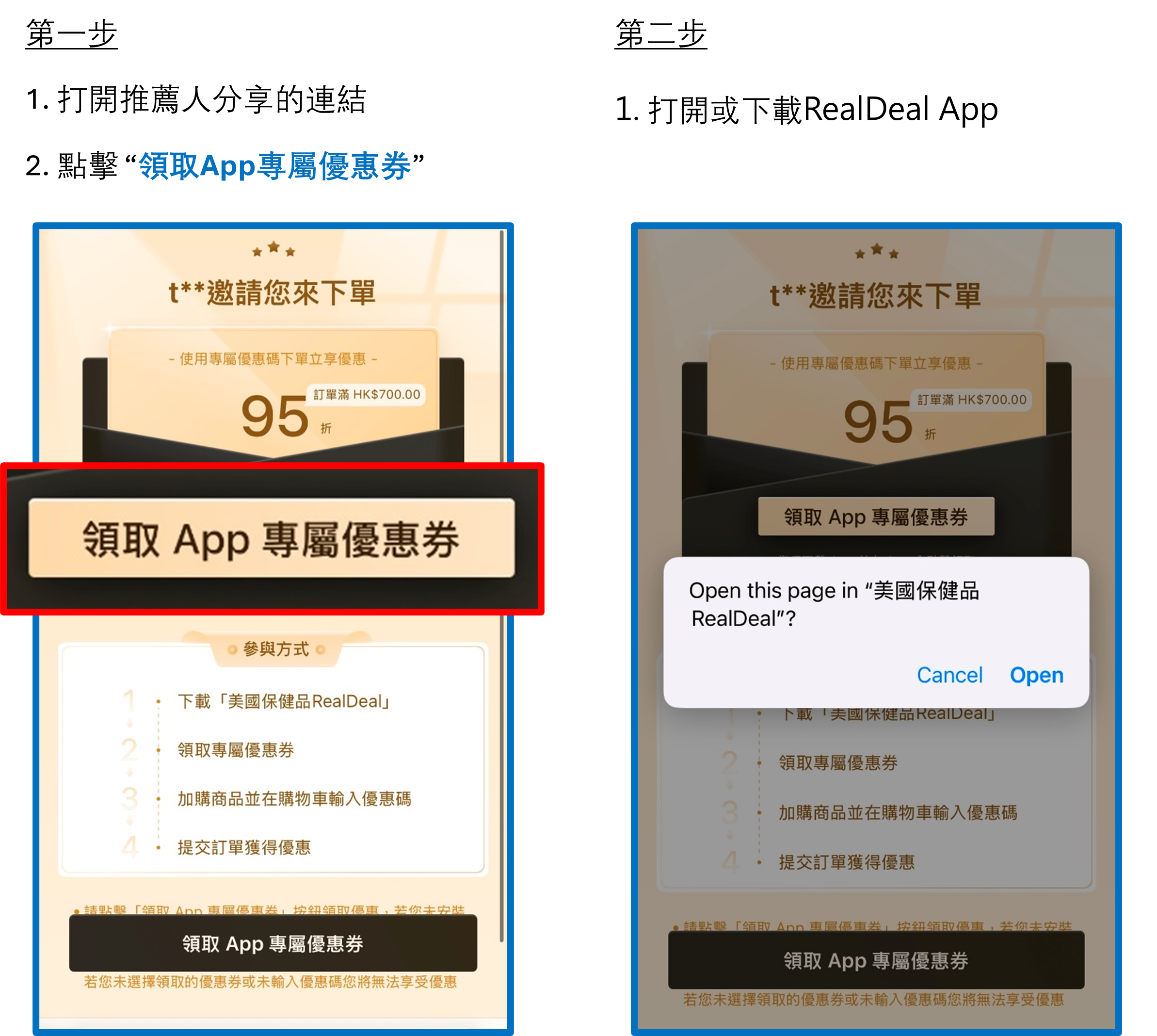 ● 被邀請人必須下載RealDeal App領取專屬優惠券。