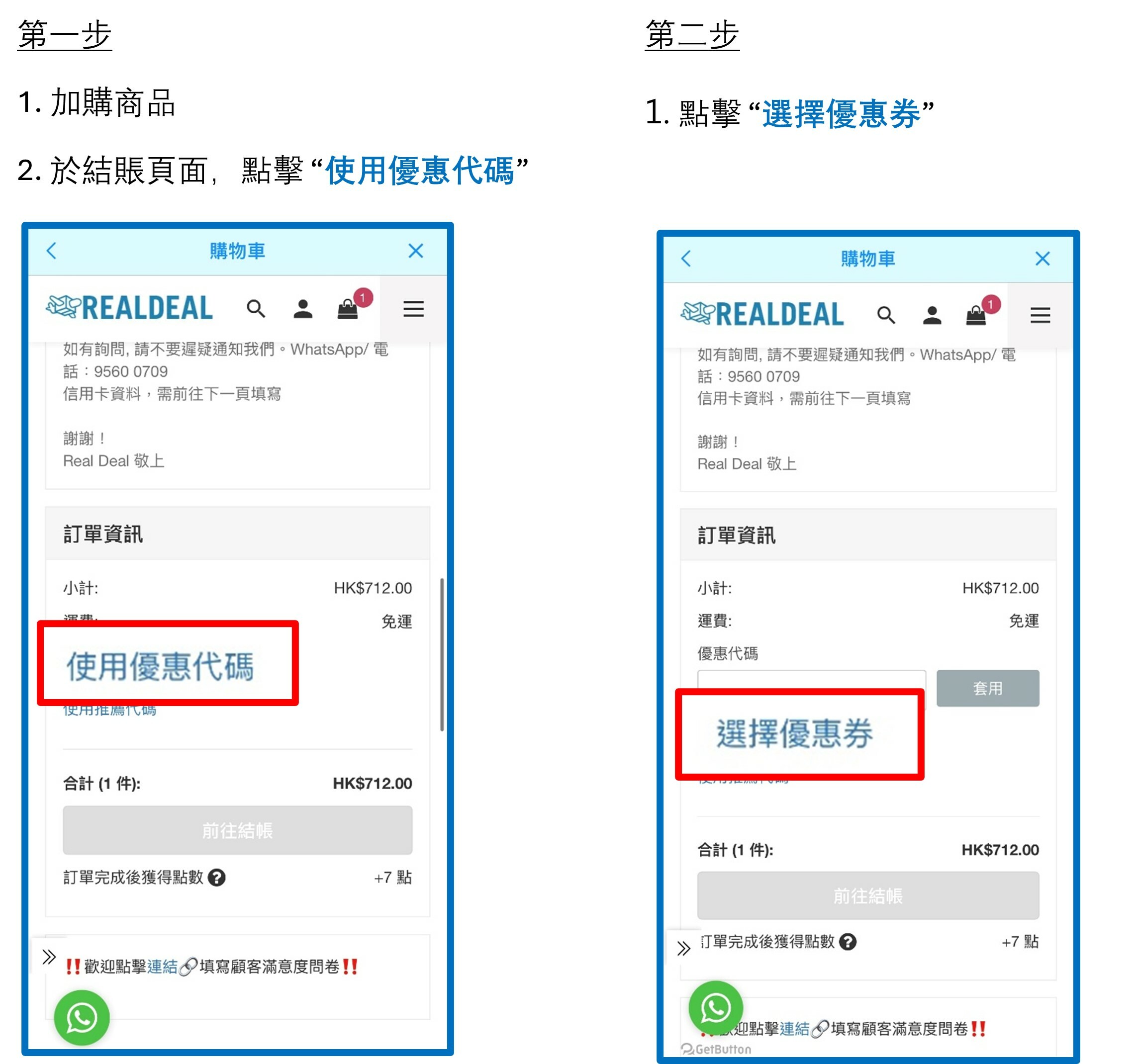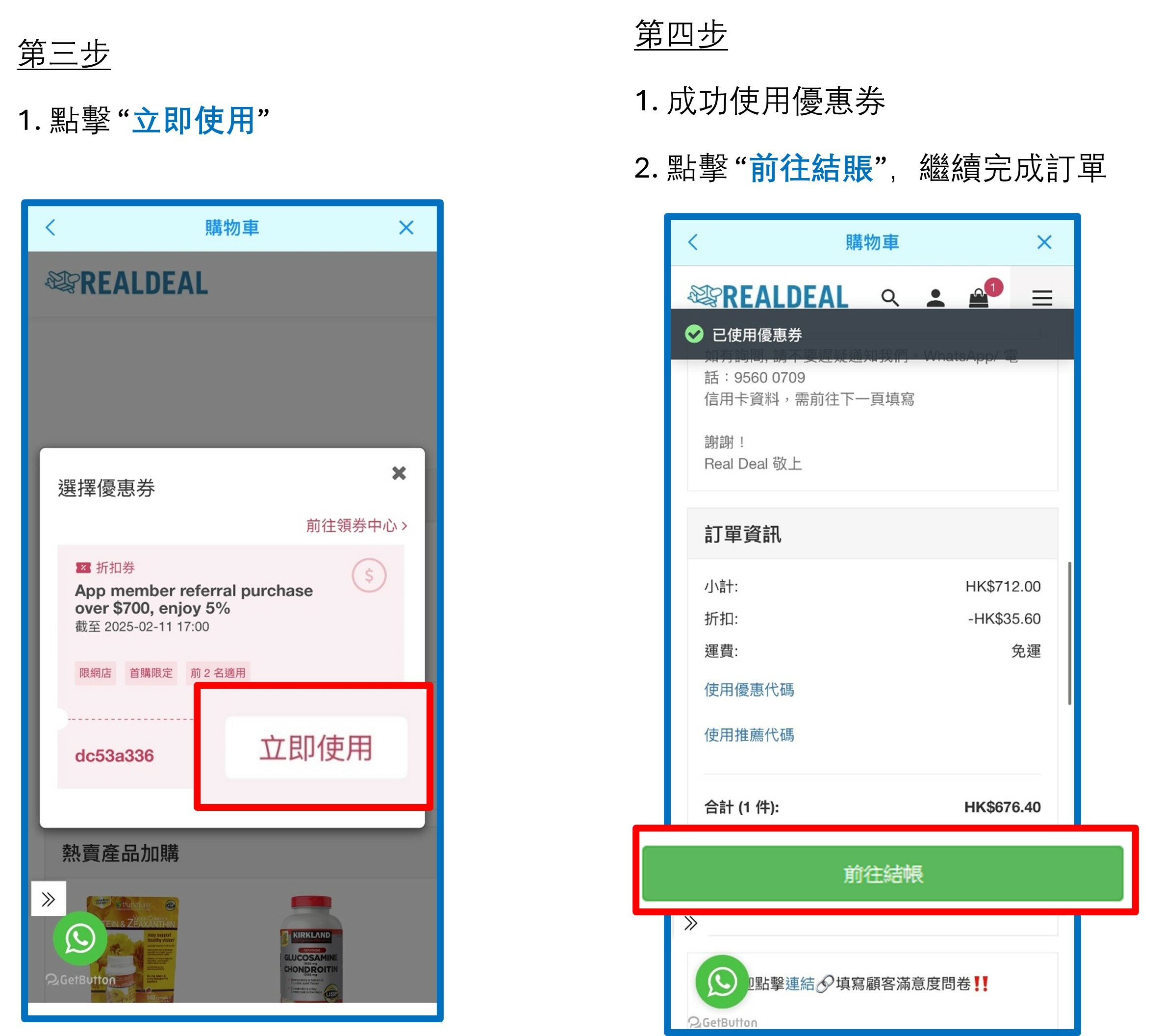 ● 此優惠只適用於第一次下載app及新加入RealDeal會員,以及首筆訂單的顧客。